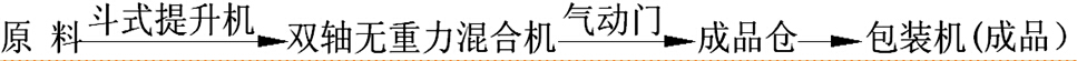 節(jié)能型生產(chǎn)線,由脈沖除塵器、斗式提升機(jī)、雙軸無重力混合機(jī)(含飛刀組)、成品倉(含二次攪拌)、自動(dòng)定量包裝機(jī)(閥口式&敞口式)、鋼架平臺(tái)、空壓機(jī)、氣路系統(tǒng)、電氣控制柜等組成的中型流水作業(yè)體系。
