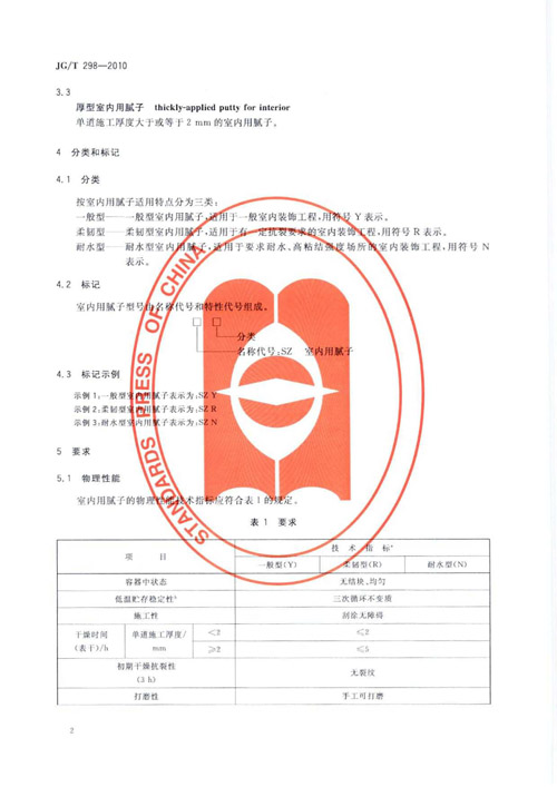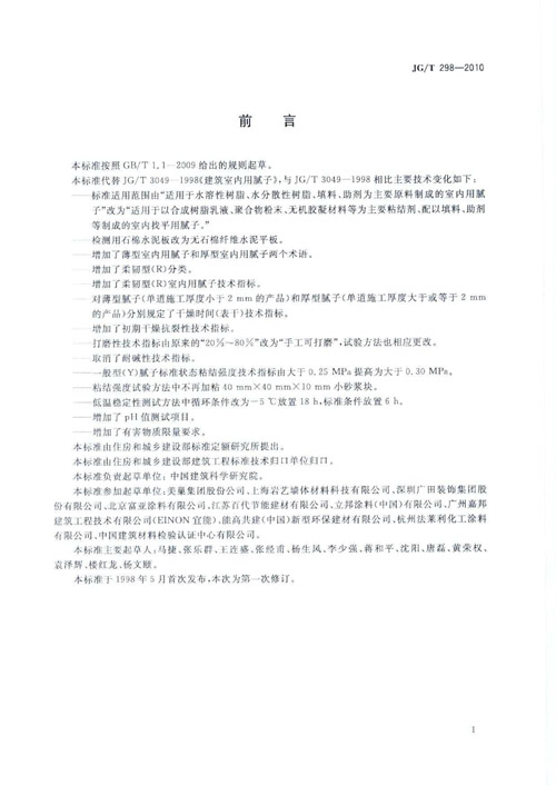 《建筑室內(nèi)用膩子》行業(yè)標準