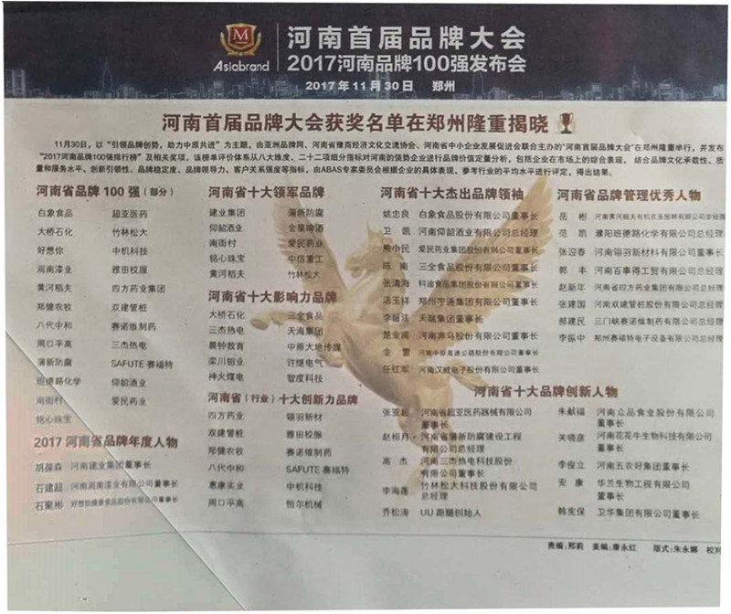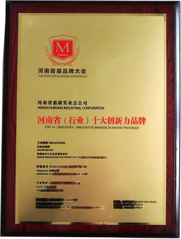近些年來河南省在品牌建設(shè)方面的重視程度不夠,致使河南省的世界知名品牌不多。為了讓企業(yè)了解自己的行業(yè)發(fā)展地位以及自身品牌價(jià)值的變化,11月30號(hào)舉行了河南省品牌大會(huì),助力河南省打造出越來越多知名的品牌,河南惠康實(shí)業(yè)總公司榮獲十大創(chuàng)新力品牌。